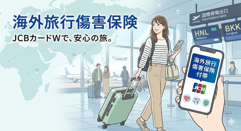 メリットの項目でも触れた、JCBカードWの海外旅行傷害保険は「利用付帯」という仕組みになっています。